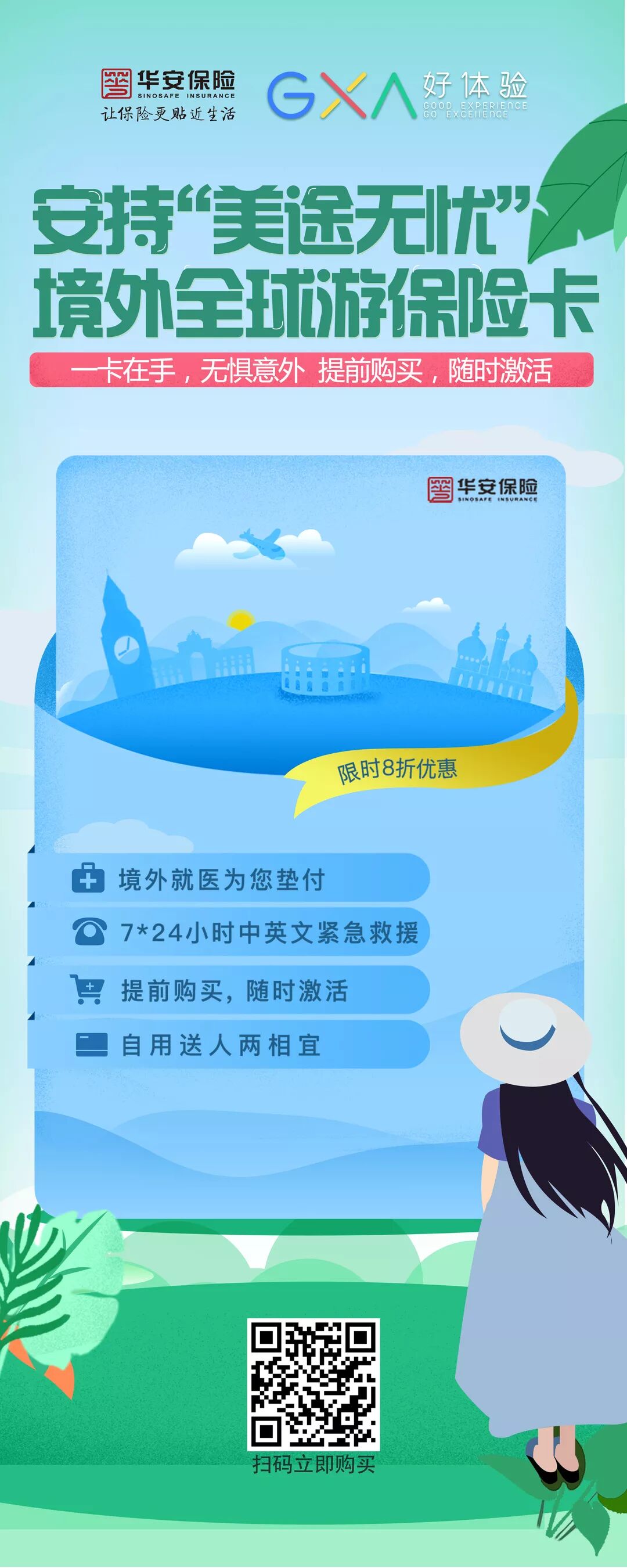 华安保险为解决『旅客要购买旅游保险但又不确定投保时间』这个痛点,快速跟进,以消费者为依归,用户体验为导向,适时推出了境外旅游保险电子激活卡。华安境外游电子激活卡,具有『提前购买,在一年之内随时激活』的产品优势。