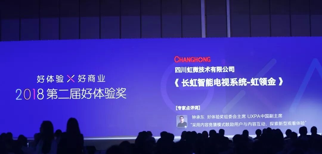祝贺“长虹智能电视系统-虹领金”获得2018第二届GXA“好体验奖”,同时,期待获奖作品唤起民众对好体验的认知,树立本行业体验标杆,让好体验成就好商业。