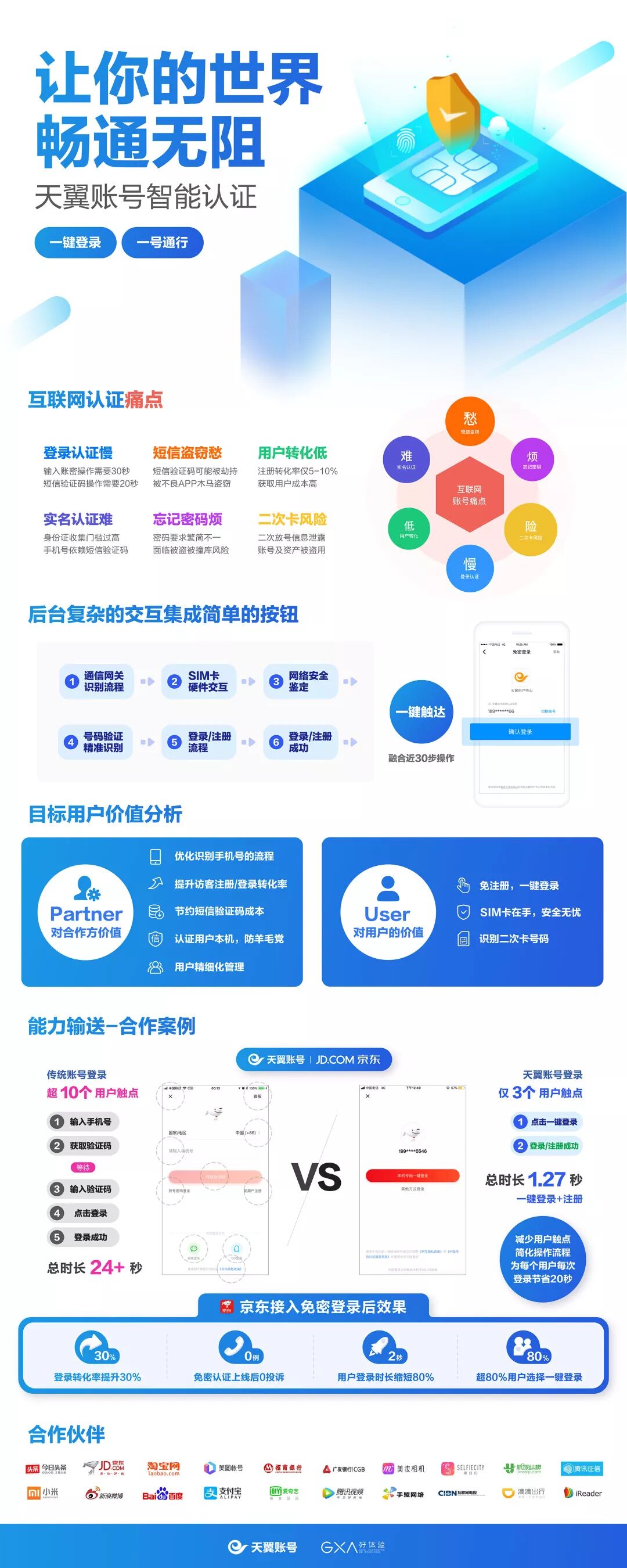 现代互联网飞速发展,伴随账密信息易被盗、登录流程繁琐、密码易被忘记等问题,导致用户登录痛点明显;众多难题,天翼账号带来更加安全、快捷的登录体验。天翼账号是中国电信打造的互联网账号体系,依托运营商移动数据网络,实现免注册免密登录。